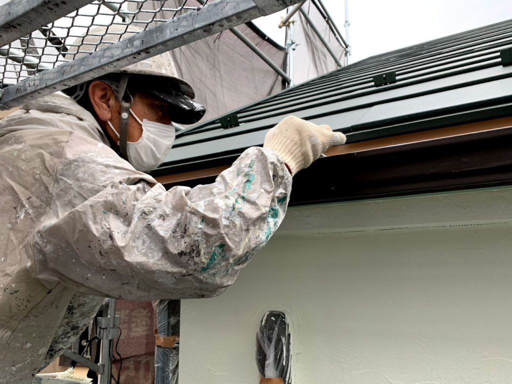 本日は付帯部の仕上げ塗装・細部手直し作業を行いました。