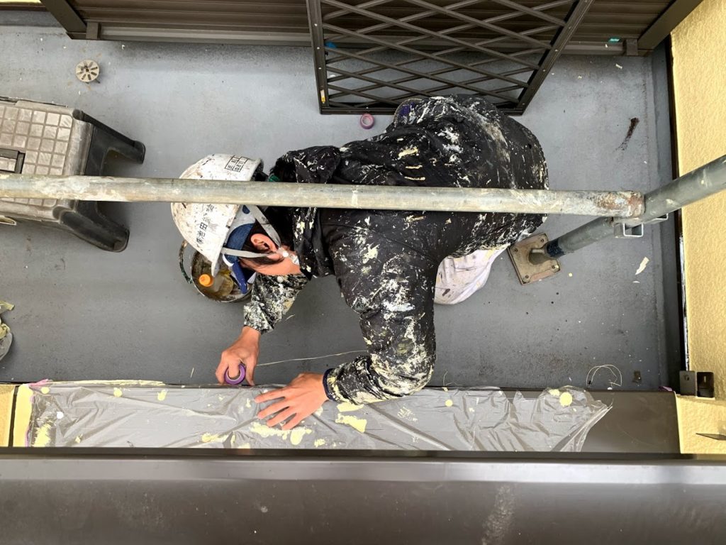 塗装作業も終盤に差し掛かってきました。明日はベランダの防水工事を予定しています。