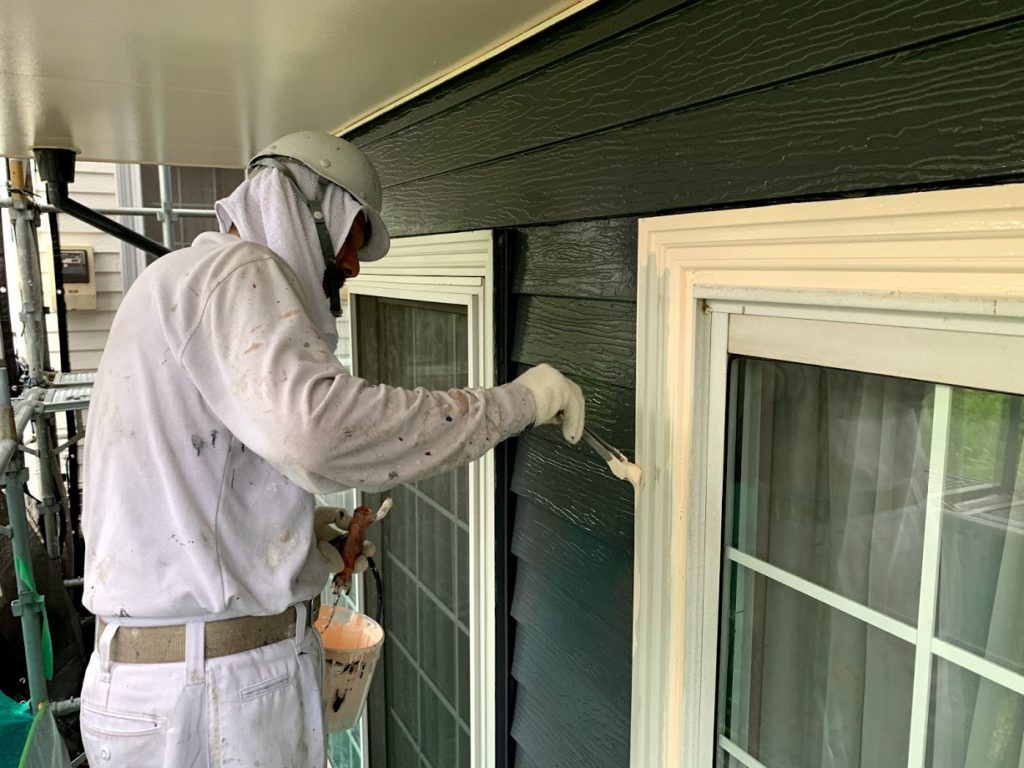 本日は屋根・外壁の下地調整後、下塗り作業を行いました。下塗りからタップリと塗装していきます。