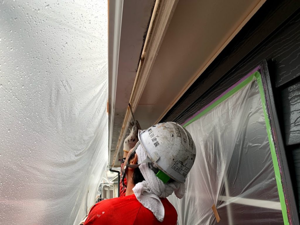 本日は付帯部の各種下塗り作業を行いました。午後からは雨が降ってきたので、雨のあたらない部分の作業を行い、何とか一日作業することが出来ました♪