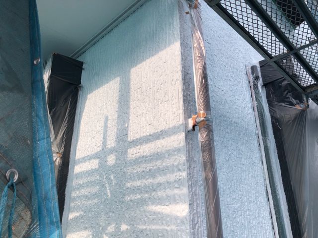 施工前の画像と比べても一目瞭然ですね!明日からは付帯部の仕上げ、ベランダの防水作業に入ります。