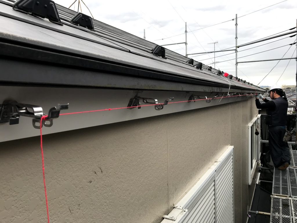 画像のようにキッチリと勾配を調整して雨水がきちんと流れるように取付け致します。