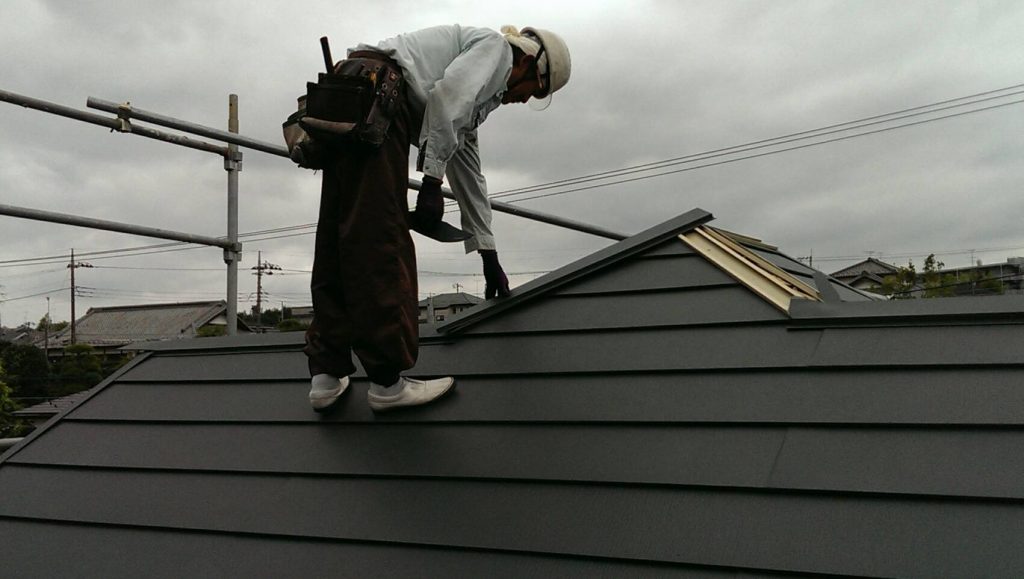 本日は屋根の板金工事を行いました。屋根工事は明日に完了する予定です。