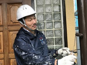 こちらのお宅の本日の作業は付帯部の仕上げ塗装と細かなところの手直しなどを行っていました。