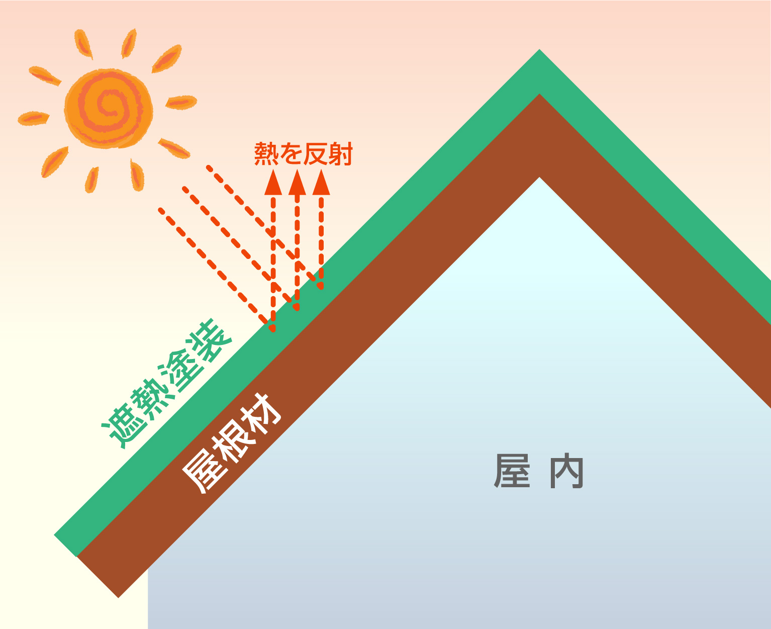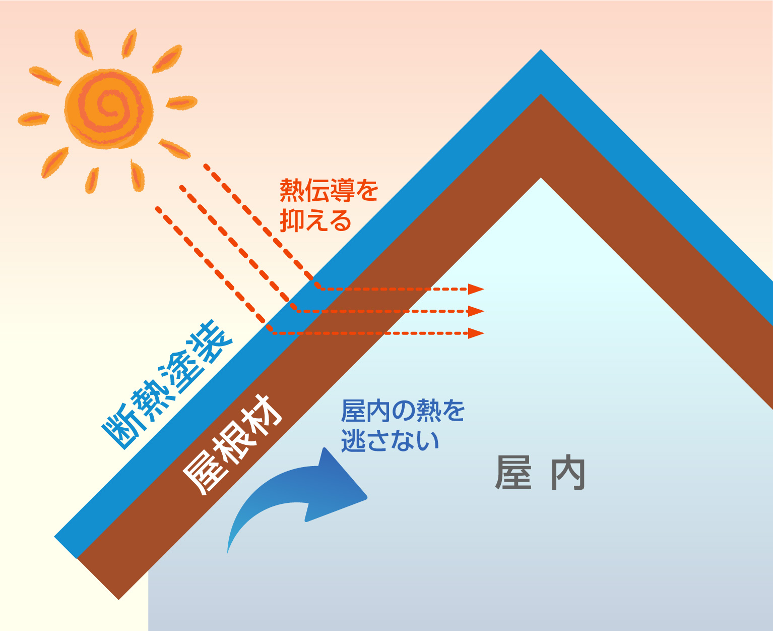 熱が伝わりづらくなる(熱伝導率が低い)塗料を使い、外の熱が中に伝わりづらく、中の熱が外に出て行きづらくする。
