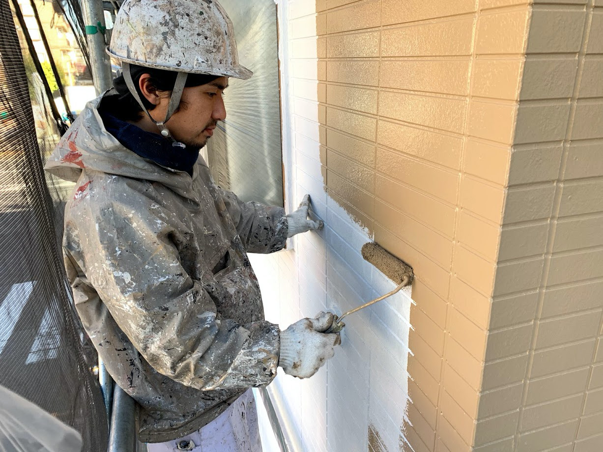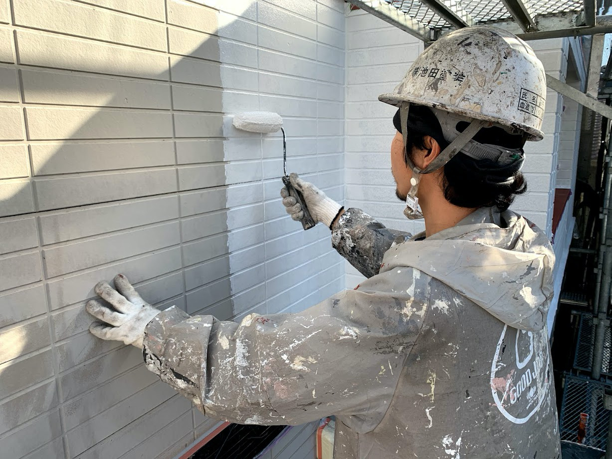 下地剤は塗ると半透明になりますが、塗り残しのないようしっかりチェックをして塗っていきます。