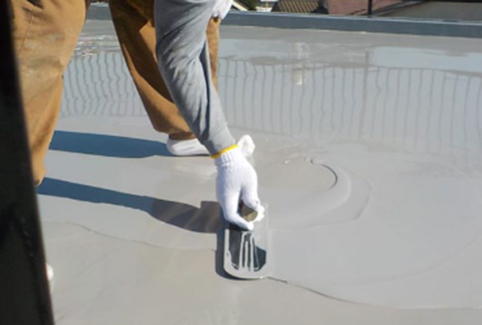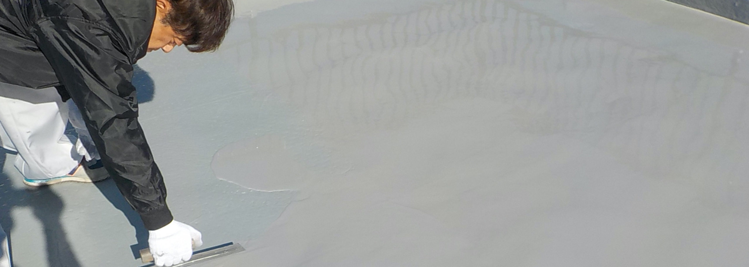 ウレタン防水とは、固まるとゴム状になる特殊な塗料を、一定の厚みをつけて塗布する防水工事のことです。液状であることから、複雑な形状であっても防水工事が可能になります。