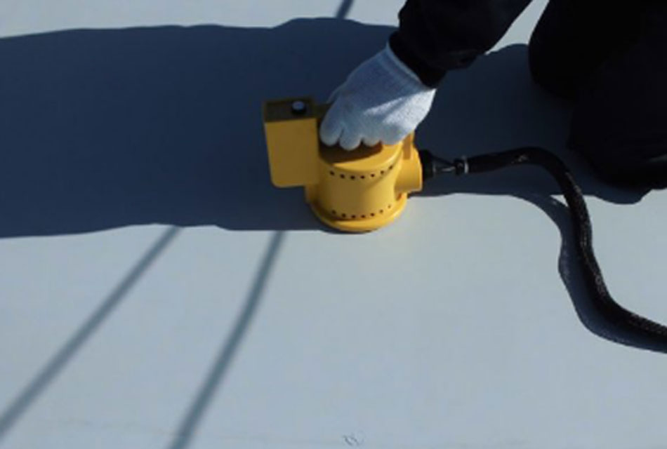 シート防水は塩化ビニル樹脂系のシート状の材料一枚で構成された防水層です。屋外での日光による紫外線、熱、オゾンに対し優れた耐久性を持っています。