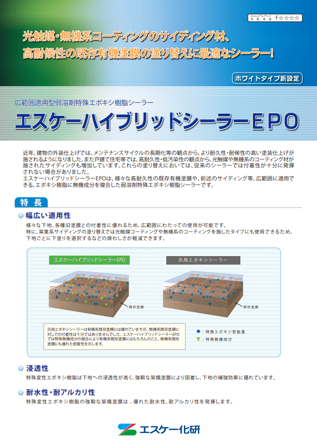 ・エスケー化研なら、広範囲適用型弱溶剤特殊エポキシ樹脂シーラーのエスケーハイブリッドシーラーEPO。