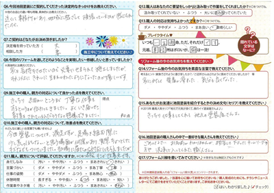 早速担当の方が訪問され、費用や日程など事細かに説明頂きました。担当の方や作業をされる方も言葉使いも丁寧で安心して任せることができました。ほぼ当初のスケジュール通りで、仕上げも責任を持って監視頂きましたので安心でした。