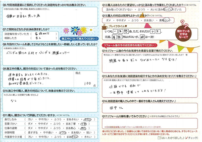 早速担当の方が訪問され、費用や日程など事細かに説明頂きました。担当の方や作業をされる方も言葉使いも丁寧で安心して任せることができました。ほぼ当初のスケジュール通りで、仕上げも責任を持って監視頂きましたので安心でした。