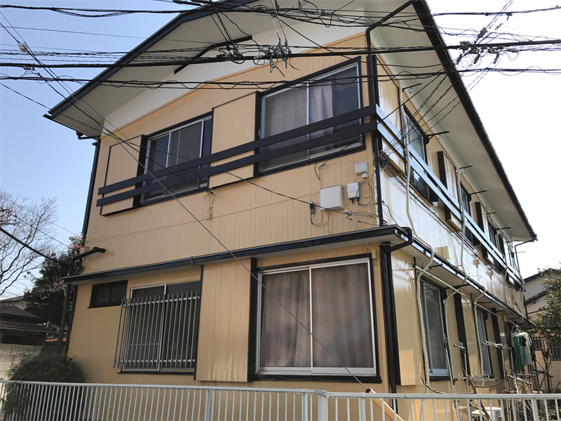 塗料お色を変えたので明るくなり、ボロアパートが新築の様になり満足です。明るくきれいになりましたねえと褒めていただきました。