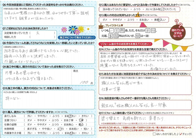 早速担当の方が訪問され、費用や日程など事細かに説明頂きました。担当の方や作業をされる方も言葉使いも丁寧で安心して任せることができました。ほぼ当初のスケジュール通りで、仕上げも責任を持って監視頂きましたので安心でした。