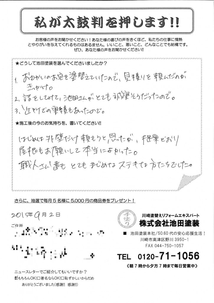 「塗り替えリフォームを通して川崎・横浜のすべての方々の住まいの安心と安全を支える」をモットーにしています。