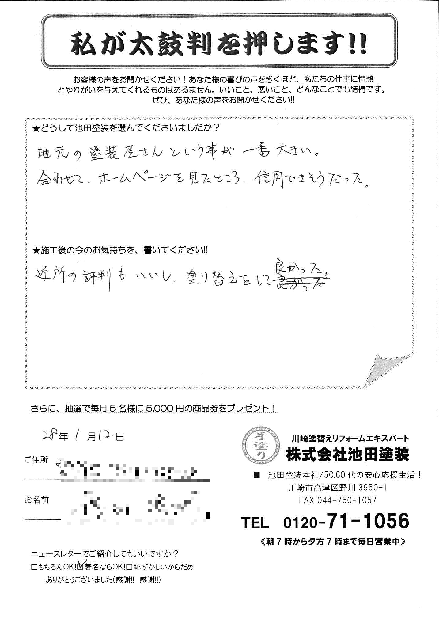 ハウスメーカーの見積があまりにも高かったので、複数社相見積もりを実施したところ、価格も安く、説明も丁寧だった池田塗装さんに屋根・外壁塗装をお願いしました。