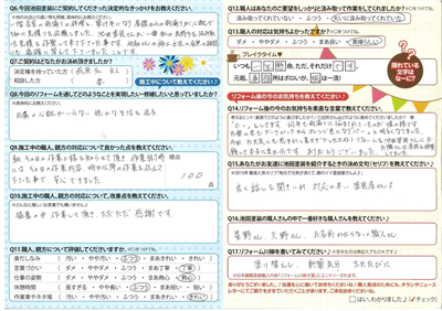 見積も3プラン作っていただき、こちらからの質問にもしっかりと納得いく形で答えて頂けました。また、他社と違い、完成後の一括精算のところも手間がかからず助かりました。