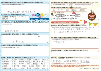 見積も3プラン作っていただき、こちらからの質問にもしっかりと納得いく形で答えて頂けました。また、他社と違い、完成後の一括精算のところも手間がかからず助かりました。