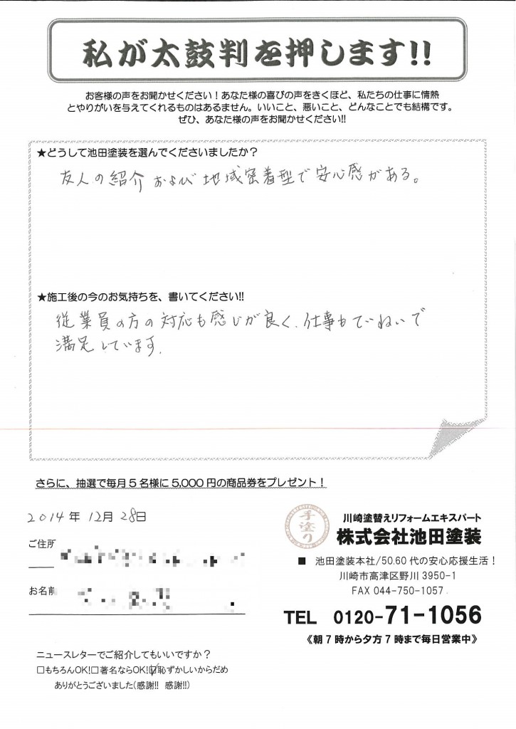 神奈川県川崎市中原区丸子通在住 Y様邸
