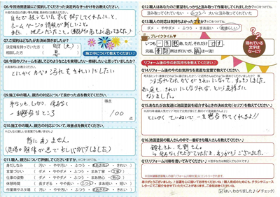 見積も3プラン作っていただき、こちらからの質問にもしっかりと納得いく形で答えて頂けました。また、他社と違い、完成後の一括精算のところも手間がかからず助かりました。