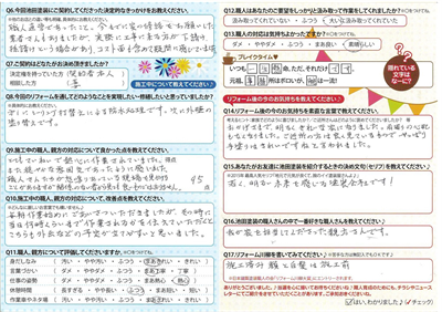 早速担当の方が訪問され、費用や日程など事細かに説明頂きました。担当の方や作業をされる方も言葉使いも丁寧で安心して任せることができました。ほぼ当初のスケジュール通りで、仕上げも責任を持って監視頂きましたので安心でした。