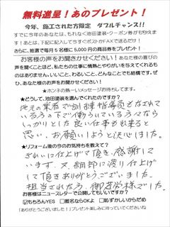 綺麗に仕上げて頂き、感謝しています。