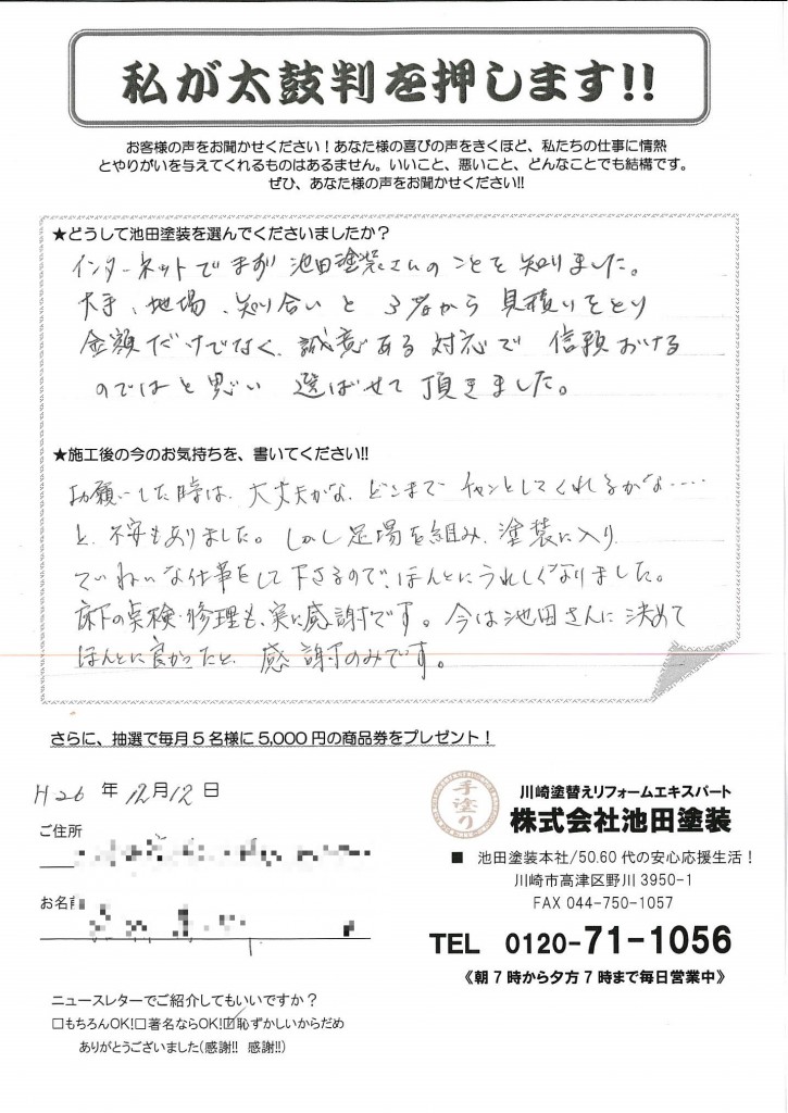 神奈川県川崎市高津区下野毛在住 W様邸