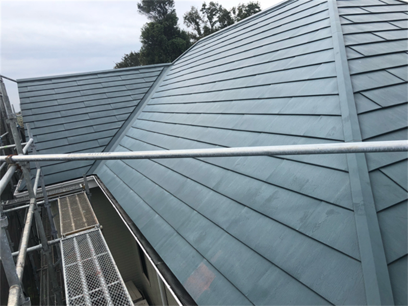 屋根の塗装の色と、外壁の塗装の色彩の調和が素晴らしく、嬉しいです。これで老いのすまいの塗装も済んでホッと安心しました。幾軒か先のお宅の二階の窓から見ていた方からが「とても丁寧な塗り肩をしていた。」と職人さんの仕事の様子を報らせてくださいました。他の人からも認められる仕事をして頂けて感謝しています。