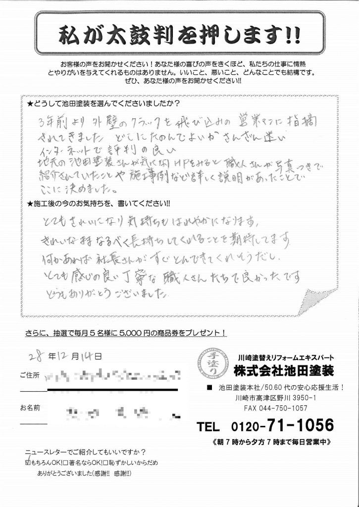 「塗り替えリフォームを通して川崎・横浜のすべての方々の住まいの安心と安全を支える」をモットーにしています。