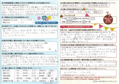 見積も3プラン作っていただき、こちらからの質問にもしっかりと納得いく形で答えて頂けました。また、他社と違い、完成後の一括精算のところも手間がかからず助かりました。