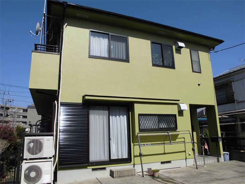今回の塗装の色は、私たちにとってはちょっと思い切った色でした。で、仕上がりが美しく近所の方からもいい色だねと評判です。気持ちまで爽やかな気分になりました。まだ先の事ですが、次回お願いするのは10年後くらい?ということは私は70才!まだ若い親方はもちろん現役なので、また御願いしようと今から思っています。