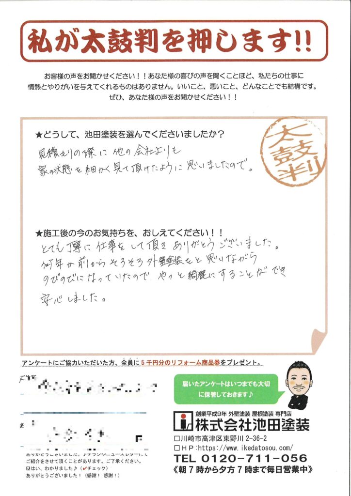 神奈川県横浜市都筑区二の丸在住 S様邸